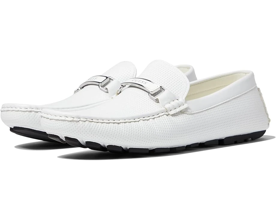 Find your new comfortable and casual slip-on with the GUESS® Aalen loafer. With a classic design and stylized outsole, you’ll be able to take your first steps into comfort and style with ease.SKU: #9521906Slip-on construction.Synthetic upper features handstitched detailing, and a horse bit across the vamp.Synthetic lining and lightly padded insole offer comfort for continued wear.Segmented rubber outsole provides grip and stability.Imported.Product measurements were taken using size 7.5, width D – Medium. Please note that measurements may vary by size.Measurements: