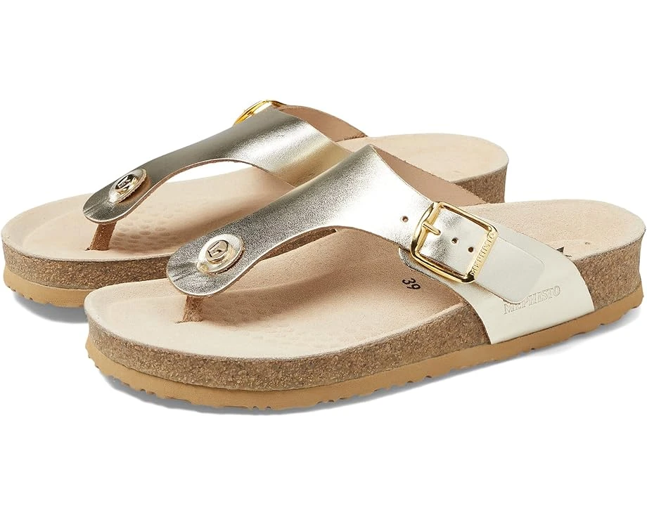 Wear the lightweight and breathable Mephisto® Melinda Sandals and have a worry-free day ahead.SKU: #9687628Man-made upper and lining. Soft-Air® flexible midsole contributes to the soft, comfortable walking experience.AIR-RELAX technology adjusts to the foot’s anatomy.T-strap style.Slip-on closure.Hook-and-loop straps for better fit.Signature brand name detailing on insole and outsole.Man-made outsole.Imported.Product measurements were taken using size EU 39 (US Women’s 9), width B – Medium. Please note that measurements may vary by size.Measurements: