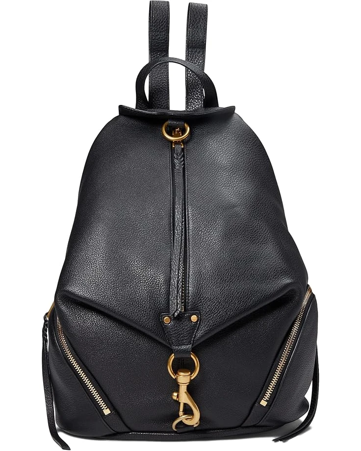 The Rebecca Minkoff™ Jumbo Julian Backpack is a large, luxurious backpack that’ll keep your essentials secure in style.SKU: #9545154Adjustable shoulder straps and top carry handle.Two exterior side zip pockets with long leather pull tabs.One back exterior slip pocket.Middle zip opening with signature dog-clasp closure.Lined interior features a zip pocket.Antique brass hardware.Dust bag included.Constructed of leather.