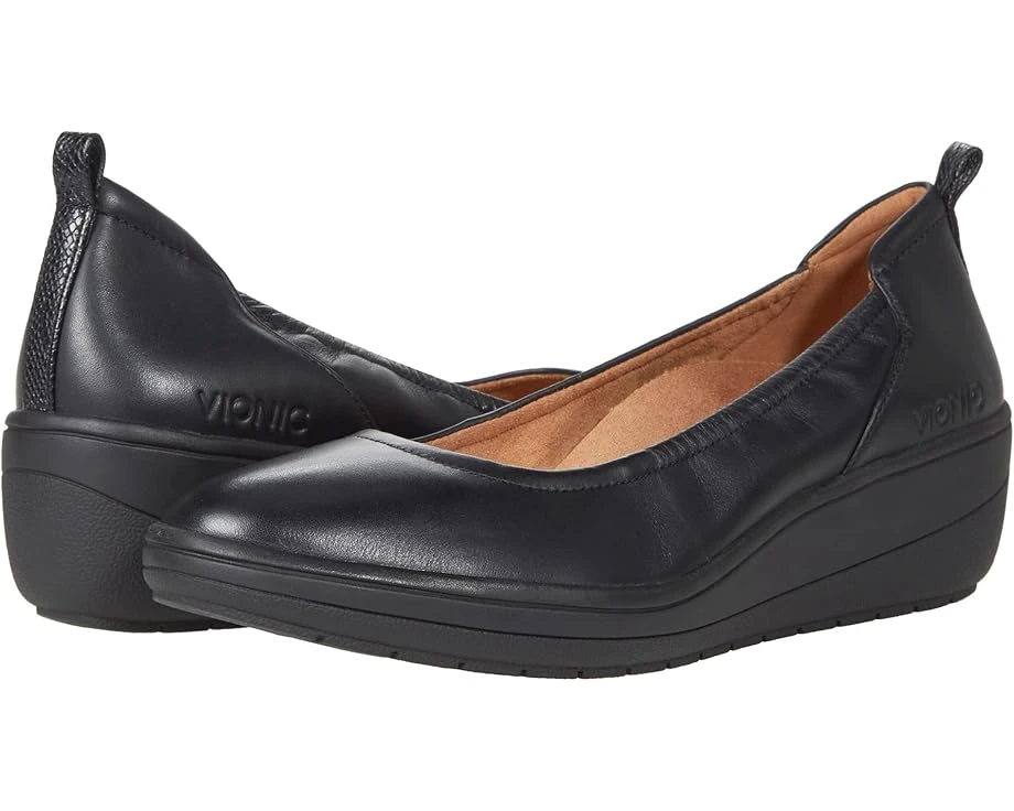The sporty look of the VIONIC® Jacey features an elasticized top line for added comfort while maintaining all-day style.SKU: #9485566Slip on style.Round toe.Wedge heel.Pull loop in back.Removable Microfiber covered EVA.Biomechanically designed to hug your arches.Leather upper.Lining and insole made from textile material.Synthetic outsole.